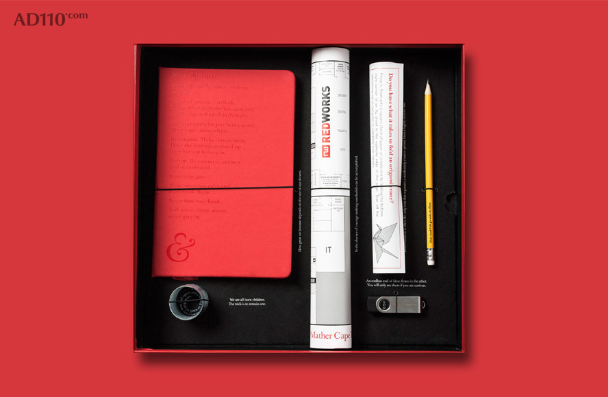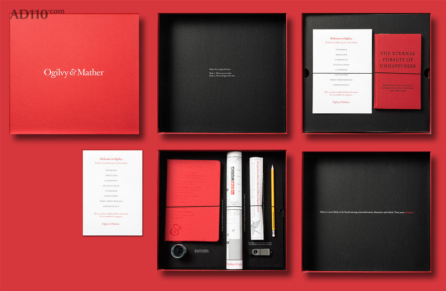 Ogilvy & Mather Induction Box(奥美新员工感应盒子)是给所有新入职员工的礼盒,设计的理念是“永恒的快乐追求”,创作者是 RedWorks 南非开普敦办公室(与奥美同为WPP集团下属公司,RedWorks 在中国设立的公司名为:Ogilvy RedWorks 奥美红坊)。