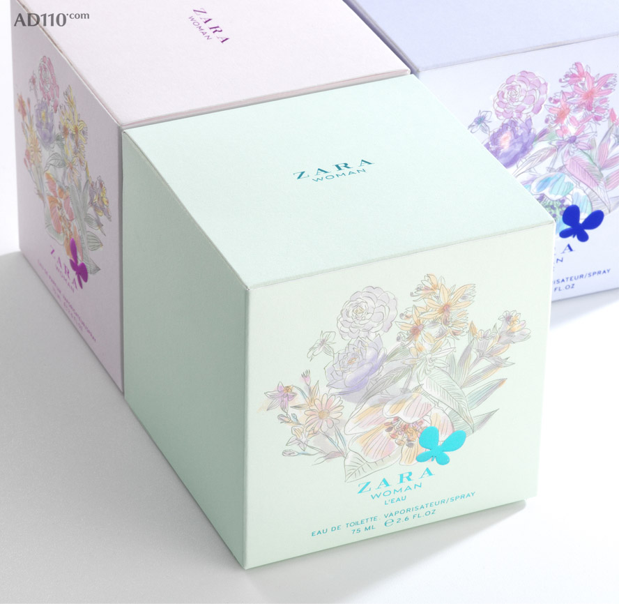 时尚产品连锁品牌 ZARA 邀请西班牙知名工作室 Aktiva Premium 为其创作的女性香水产品日前已经发布,AKTIVA 的设计基于“花香”概念,采用铅笔和水彩相结合的花卉插图,精致而美观,以柔和的色调体现女性的优雅,外包装的金属油墨+凸印技术,与花卉瓶型内外呼应,将性感和浪漫进行到底!