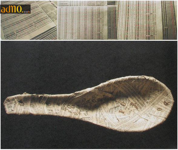 ▲ 创作素材:股票信息打印纸,旧报纸包裹着勺子