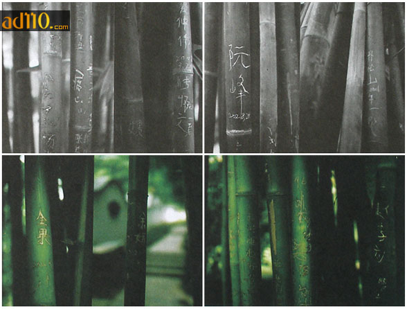 ▲ 作品:由湖南岳麓书院后面的竹林,到处是被游人刻画的文字,拍照后经过设计而来