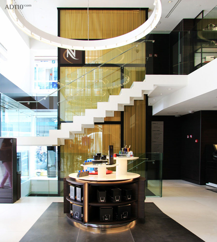 Nespresso 最近在米兰开了意大利的首间旗舰店,请来了 Parisotto + Formenton 建筑设计事务所操刀其店铺设计。Parisotto + Formenton 曾为许多品牌的零售商铺、精品店面以及咖啡馆等做过内饰设计。Nespresso 意大利旗舰店的整个零售空间分为 4 层,每一个楼层都将承担不同的服务功能。在一楼,Parisotto + Formenton 还为其设计了一个特别的空间“专家工作室”,咖啡技师们可以在此进行一些研讨与品鉴活动。除了一些售后服务,在这里,顾客也可以在 Nespresso 咖啡专家的协助下选购适合自己需求的咖啡机。二层则是 Nespresso 各种咖啡机款型的展览售卖厅。顶楼被用做会议空间,亦可以为专业顾客或企业用户提供更加高端的解决方案。