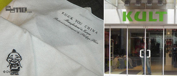 德国之声报道(原文转载): 德国北部港口城市布莱梅的购物街上,一家名叫KULT的服饰店橱窗展示着一件白色T恤,背面赫然印着「FUCK YOU CHINA」英文字,衣服正面左下角还印了象征中国人的小丑。这批「辱华」T恤,经网络传播已构成中国与德国、瑞士的外交风波。