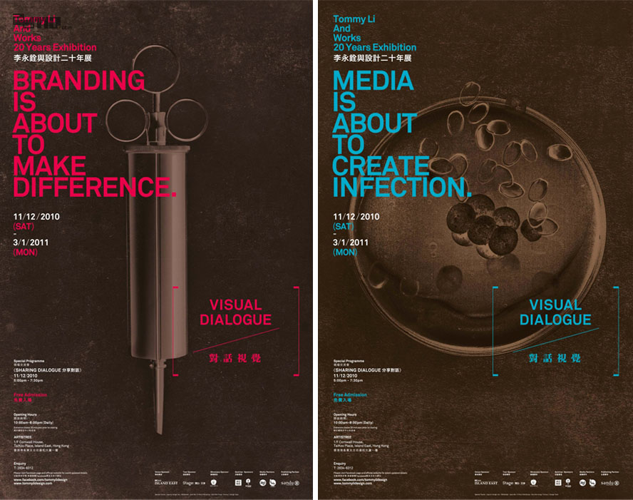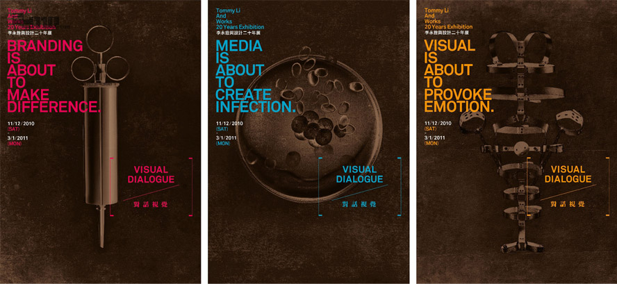 李永铨(资深设计师,AGI会员,以下简称“李”):不知不觉,李永铨设计楼从一九九零年到现在已经二十载,见证香港回归,中国经济改革进程,设计也从“美工”慢慢演变成今天的“专业”,二十年,感受良多,眼见不少年轻一辈加入设计这个“不知生死”的“乐园”!也目送不少同龄一代中途变节!我想我非合群一类(但也非反动),多年来只是随心而欲,二十年在同一专业,同一机构奋斗,希望借此展览向大家介绍这二十年的变化,说实话我不希望大家以为我在耀武扬威的炫耀!这些作品虽绝非什么绝世之作,但希望大家从中了解我在过去二十年为什么还可以这么兴致勃勃的创作!英国太古集团提供本次展览的赞助,也反应企业对创作人的重视,两千平方米的展览场地,显得非常奢侈!