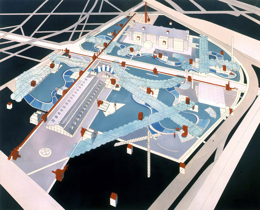 他在纽约和巴黎都设有事务所,经常参加各国设计竞赛并多次获奖,其新鲜的设计理念给世界各地带来强大冲击。1983年赢得的巴黎拉·维莱特公园国际设计竞赛,是他最早实现的作品。另外,屈米有很多的理论著作,评论并举办过多次展览。他鲜明独特的建筑理念对新一代的建筑师产生了极大的影响。