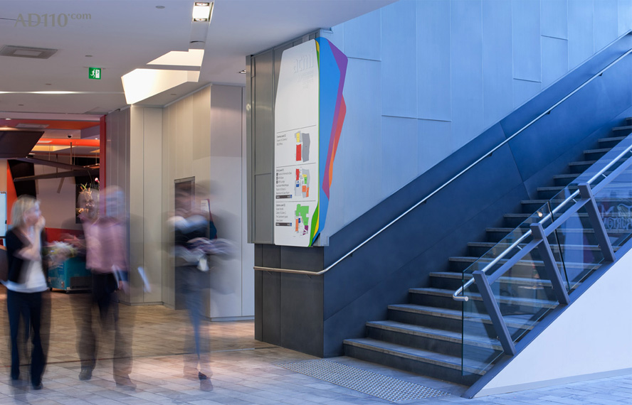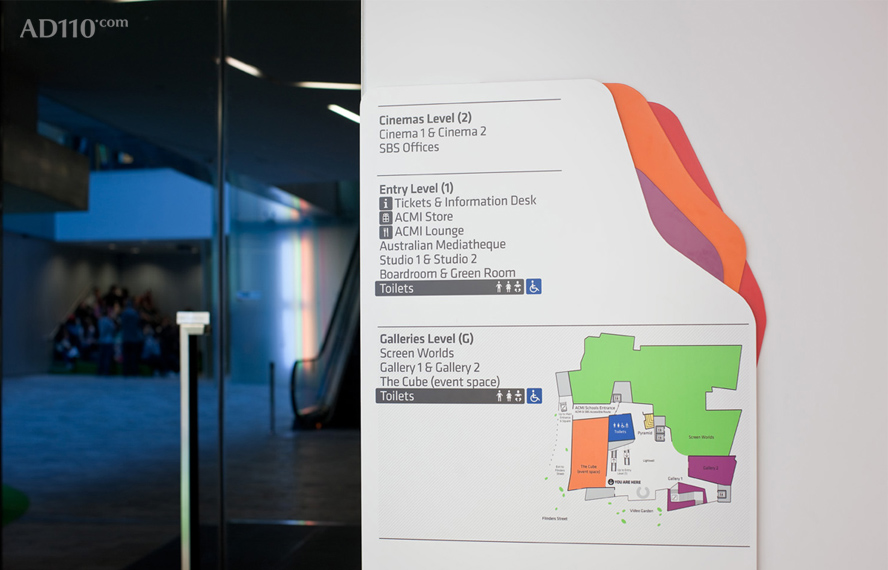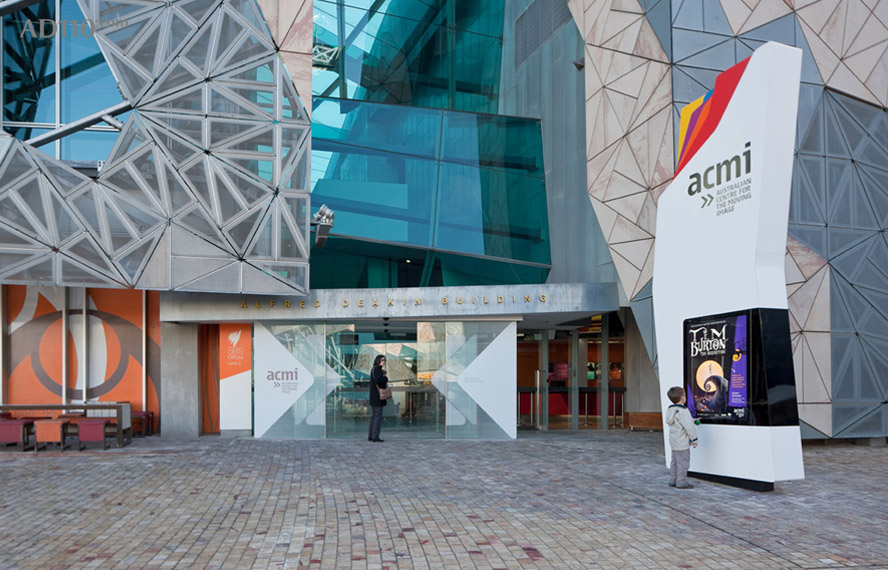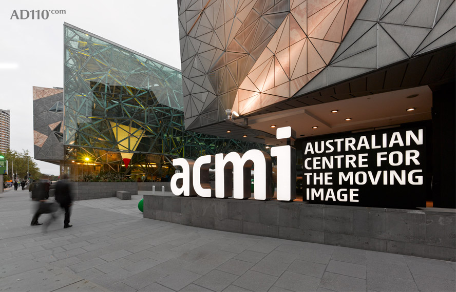最近由Buro North设计的ACMI Signage已经面世,从指示牌来讲,是联邦广场行人入口的主要单片标志,也是弗林德斯街大的发光字体形式。该指示牌的概念基于:大于各部分的总和的ACMI,形成了由运动图像的可见光谱创建的白光;戏剧性的角度和彩色光碎片表明了运动与转化,在固定的指示牌,游客也四处参观他们的三维窗体。