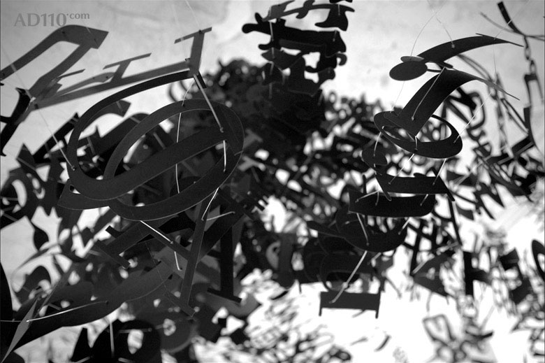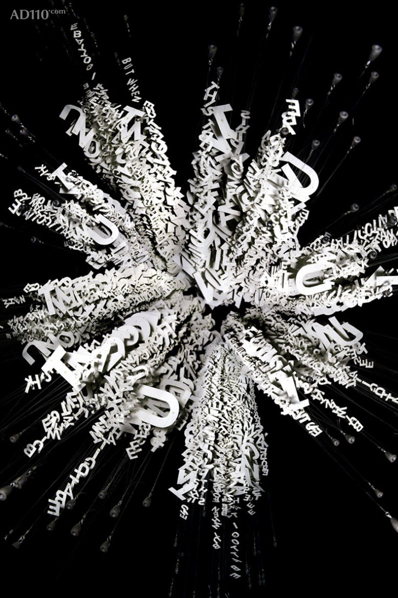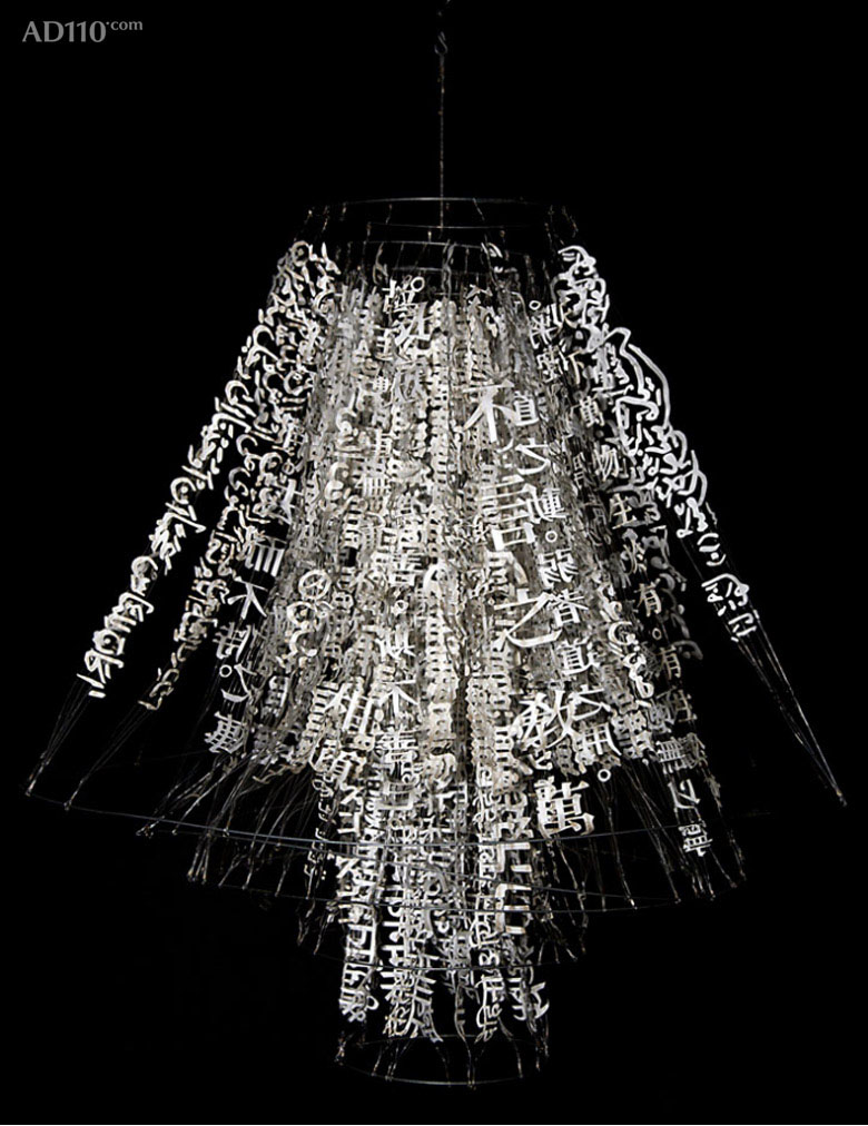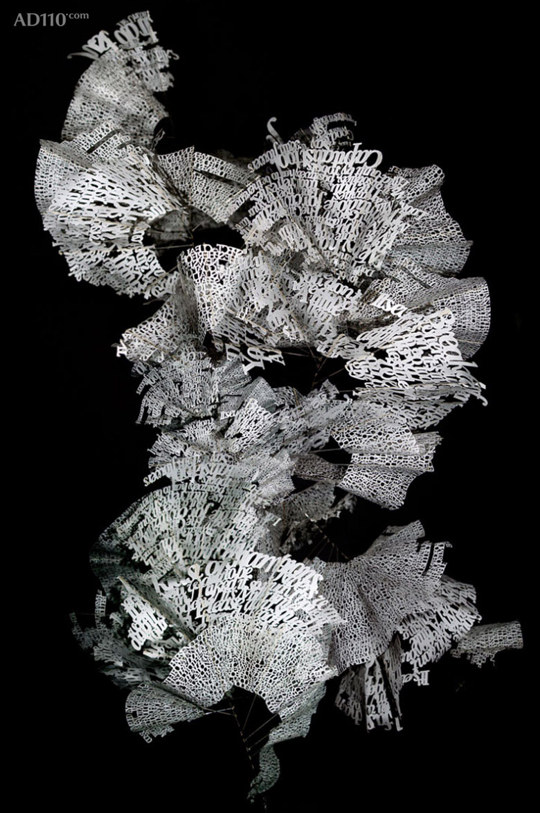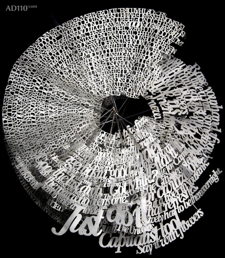 Heath采用激光切割和手工切割来创作 “文字雕塑”,并选以悬挂的立体方式呈现。