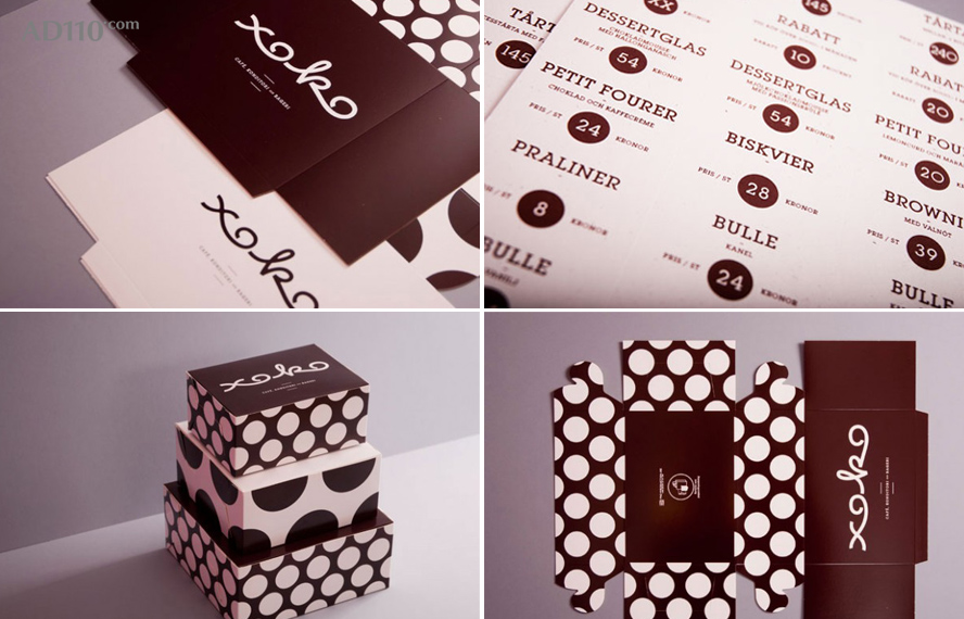 虽然这个视觉形象曾赢得了一些设计奖项,仔细审视可以发现:由于当时试图用太多元素来表达过多的内容反而这使整个视觉形象变的模糊。所以现在要做的是简化其余的视觉形象。于是设计师保留了原本的深棕色(PMS 4975),(以便保持它与巧克力的关系)去掉了其他所有的颜色。并通过将字体改为Lubalin Graph Medium来赋予它更多经典的感觉。然后基做了一个简单但重要的变化:所有的零都是正圆,这样可以联系到店中的墙壁。
