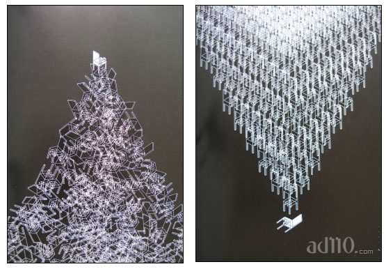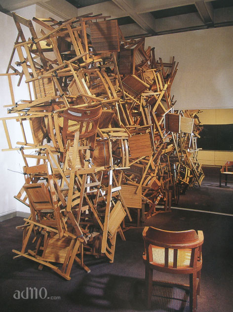 (ad110.com 台北讯) 香港设计师刘小康今起在台北诚品书店敦南店艺文空间展出近年来作品,这项展览名为「椅子戏」,盼藉高低、平衡、多寡、分合、背向等造型大异其趣的椅子,探问各种社会关系。