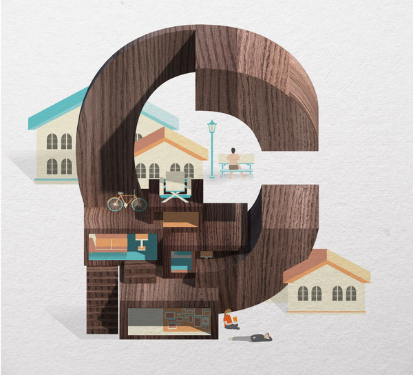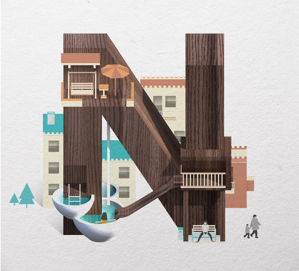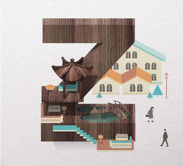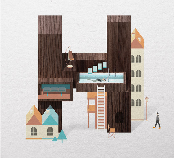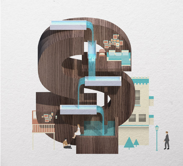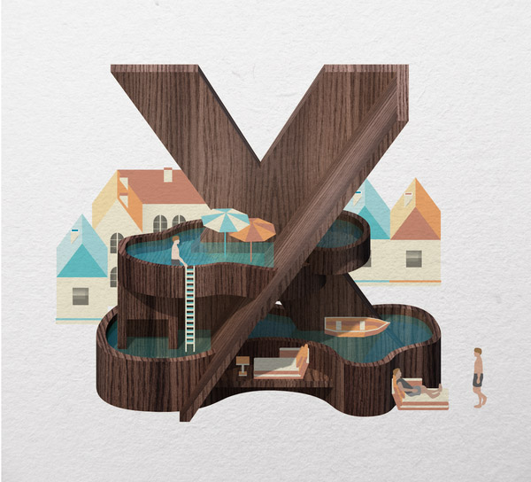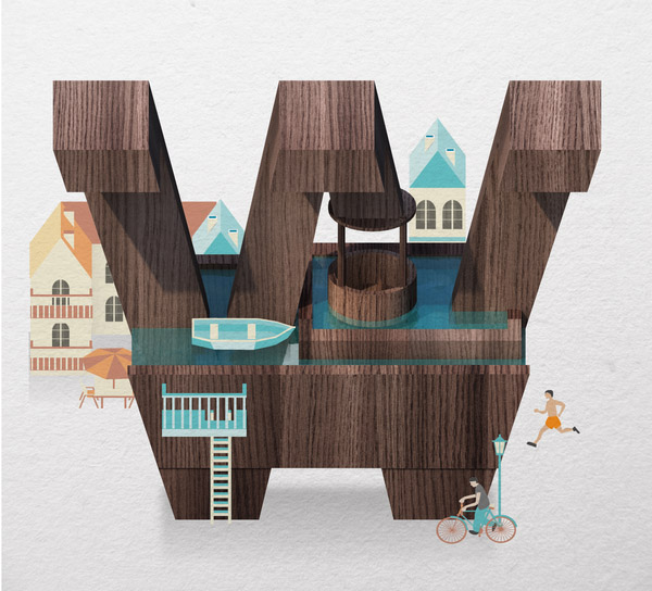 以下作品是他以水、游泳池为主题创作的字体作品。更多他的作品可访问:www.mazakii.com 或加他的 Twitter 帐号(有可能在中国内地无法访问)