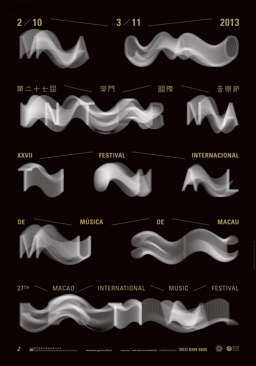 Chiii Design 是澳门设计师组合的工作室,AD110 在 GDC 2013 评委访谈中多位评委谈起喜欢他们的一组参赛作品,来自伦敦的评委 Simon Manchipp 声称特别喜欢“澳门国际音乐节”和“澳门艺术节”这两套作品,一个以音乐声波为主题,另一个以流动的色彩为主题。Simon理解为他们通过艺术的方式全面包装品牌,而不仅仅是设计一个有颜色的标志。多媒体全面渗透我们的生活,一个不会变化的标志已经失去生命力了。Simon称他常说标志已死。