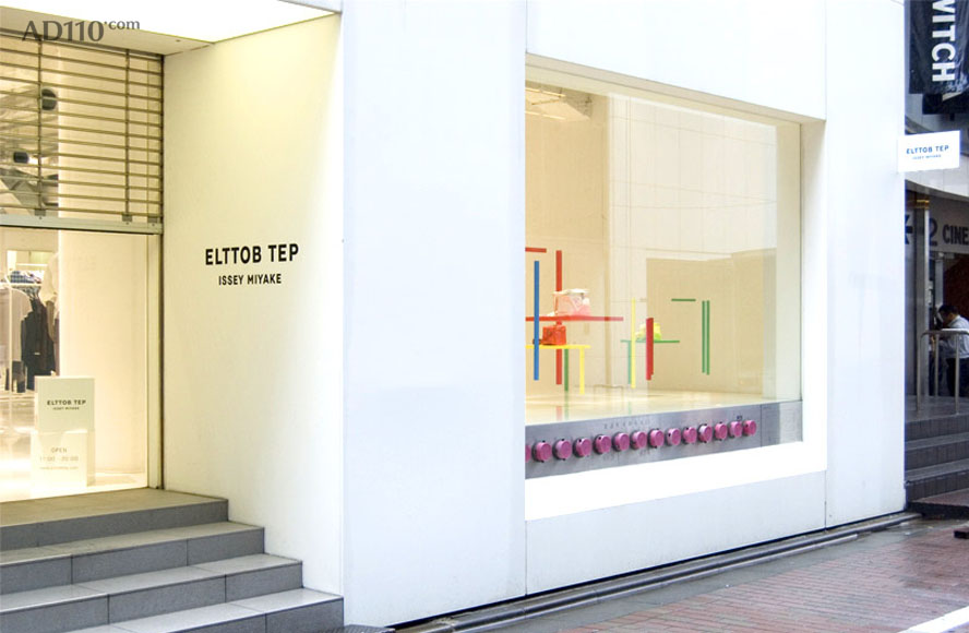 从街道两旁看过来就像是漂浮在空中的线和面,走进橱窗才意识到原来碎片是组合成五张椅子,并且都有各自鲜明的颜色。这个空间设计是基于由二维的布到三维的服装的这样一个过程,给人造成错觉,将极简主义的元素利用到了极致。