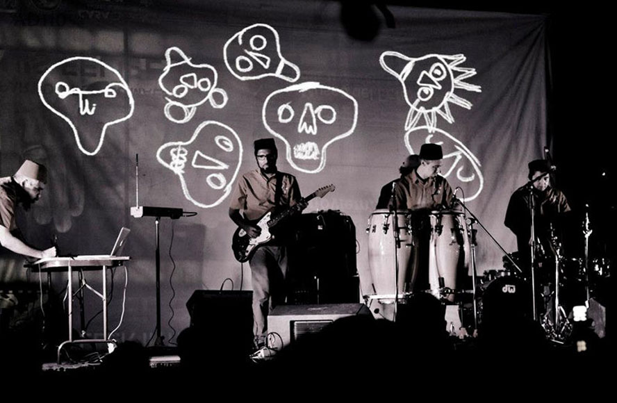 Dr. A:我尽可能发掘不同的主题和采用不同的绘画方法。从我从事编辑插图这份工作开始已经有很长一段时间了,尽管在这期间我依旧还在为各种音乐绘制插画作品,但与此同时我也开始和一些音乐家们展开新的创作,那就是现场绘画表演,这对我来说完全是一个新的领域。它将绘画从一件个人活动转变成一件大众活动,它完全改变了我对工作的看法。在这个新的形式下,我总是在画完一个图案之后又立刻想出了另外一个更好的图案,所以我不得不将自己画的所有图案都展示在一个画板上,一开始我非常不习惯这样,这使我仔细思考 “误解”这个东西到底是否存在,尤其是涉及到表达方面的时候。人们又是怎么知道图画里存在“误解”的呢?
