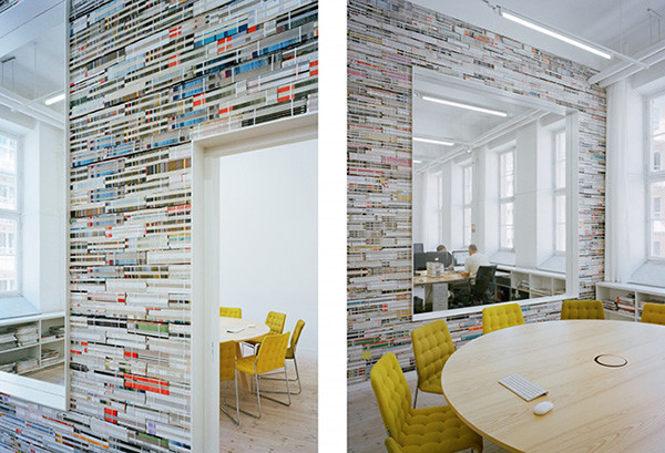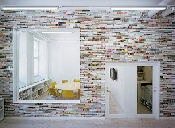 总有一面墙不是土木工程来的,比如,杂志堆起来的墙壁。Oktavilla 斯德哥尔摩