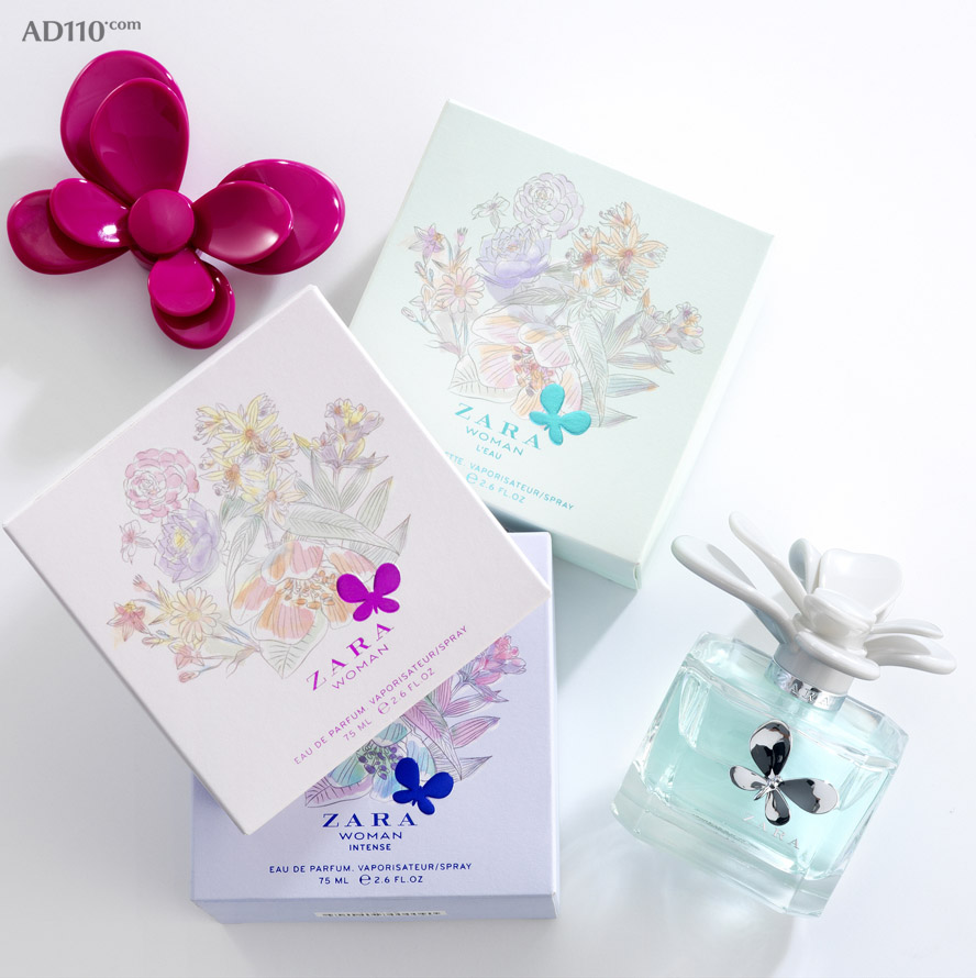 时尚产品连锁品牌 ZARA 邀请西班牙知名工作室 Aktiva Premium 为其创作的女性香水产品日前已经发布,AKTIVA 的设计基于“花香”概念,采用铅笔和水彩相结合的花卉插图,精致而美观,以柔和的色调体现女性的优雅,外包装的金属油墨+凸印技术,与花卉瓶型内外呼应,将性感和浪漫进行到底!