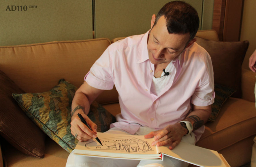 karim rashid 在中国的项目还不足够多到将中国的某个城市化作印记留在自己手臂上。