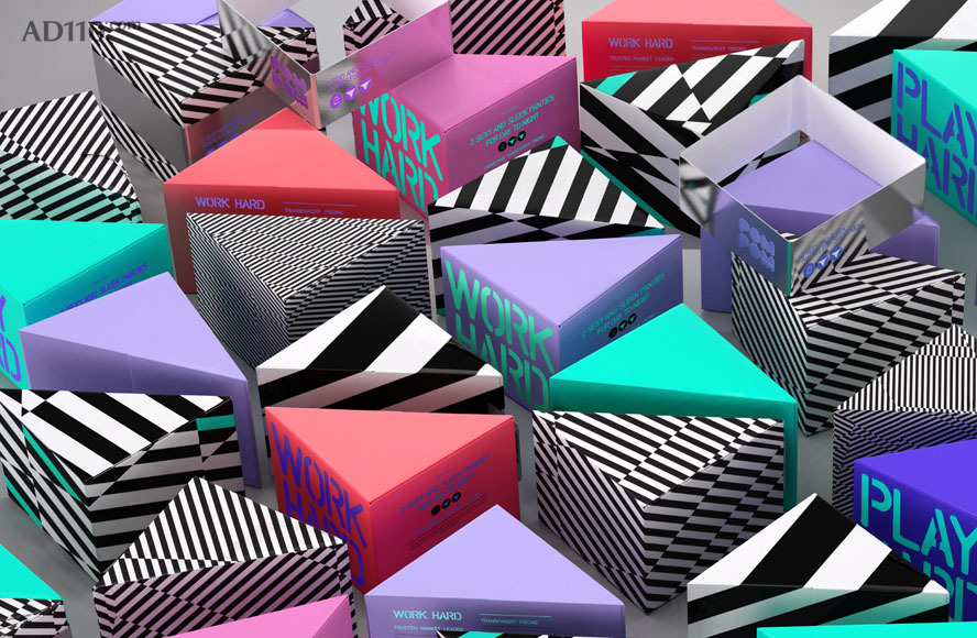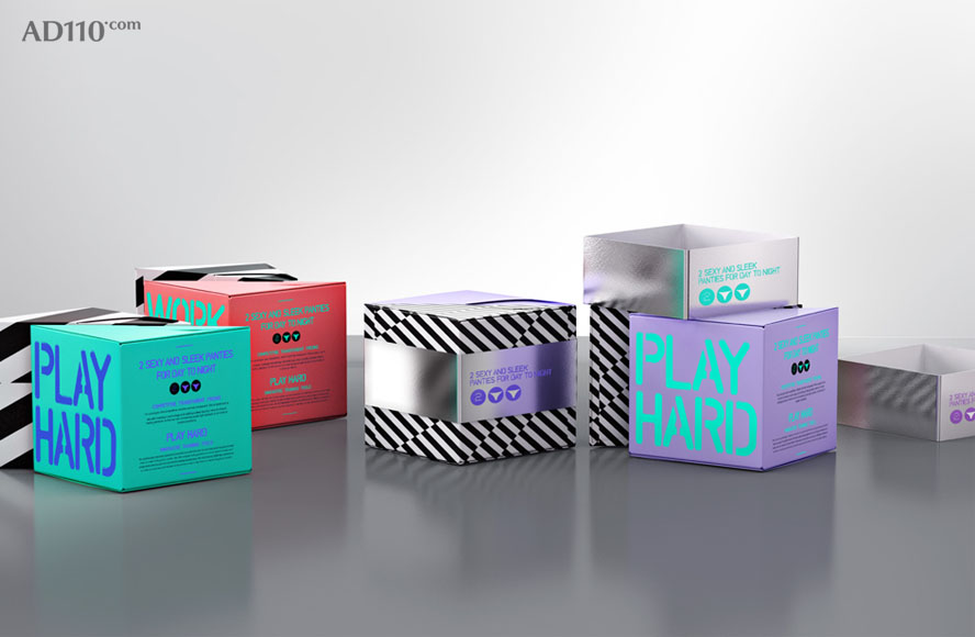 Reynolds and Reyner 的创作思路主要从“时尚内衣”的联想着手,之后采用了不用联想就能感知的时尚色彩、和视觉符号。还为其创作了品牌口号“ Work hard, play hard”。