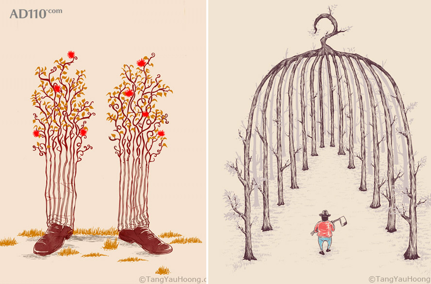 本图作者为tangyauhoong.身份为视觉艺术家,平面设计师。作品多用到正负形以及超现实的手法传达其作品内涵。
