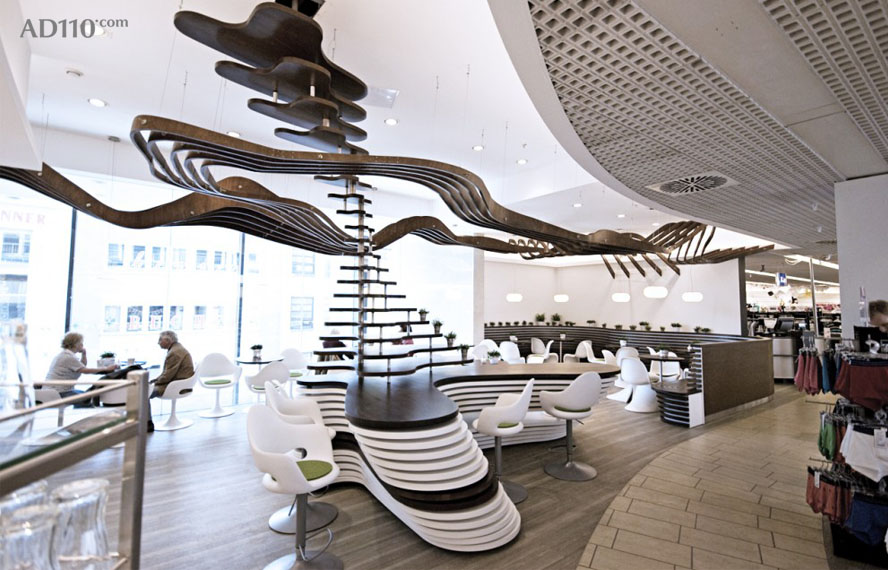 近日,坐落在德国一家绿色生态酒吧已经建成。该项目由建筑设计师Siddik Erdogan 和Jörn Fröhlich共同完成,基本概念是向周围顾客诠释一种新的、健康的可持续生活方式。包括酒吧内部有机材料的选用、绿色食品的推广、白色卡椅子、白色郁金香表的组合,无不传达设计者独特的有机设计理念。