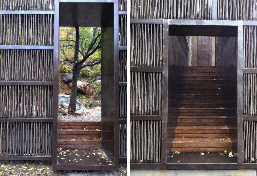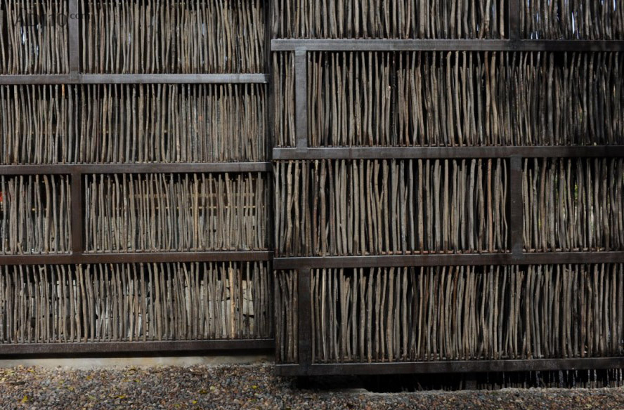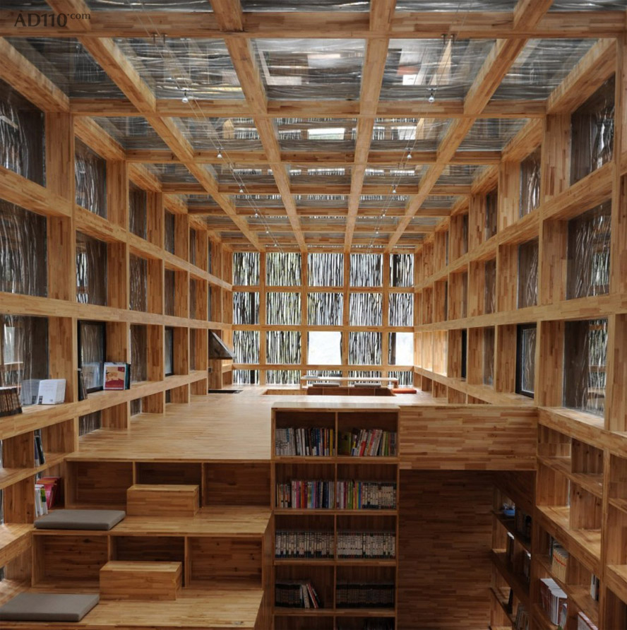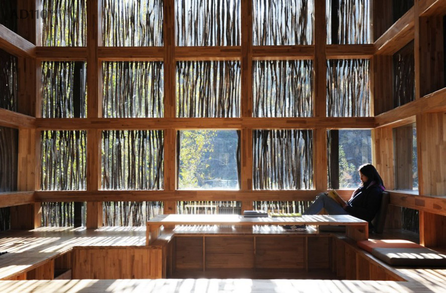书屋本身与自然环境结合成浑然的一体。场景中,既遮阳又透光,同时展现出强烈的地域特性,书屋也因此取名“篱苑”。