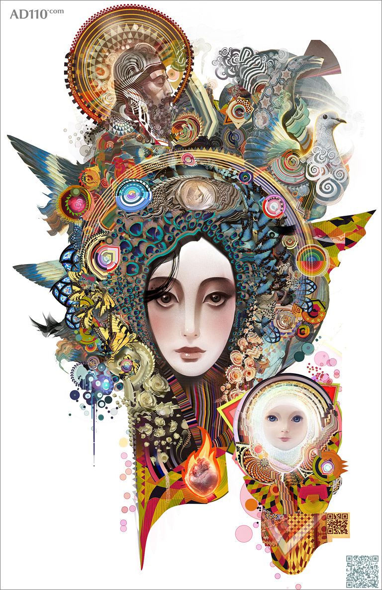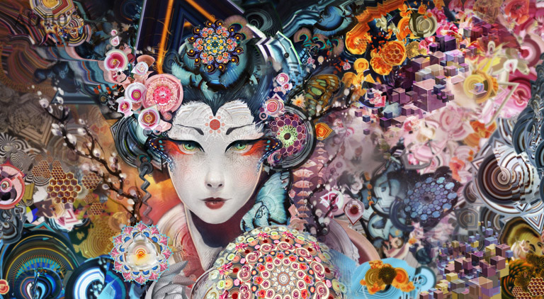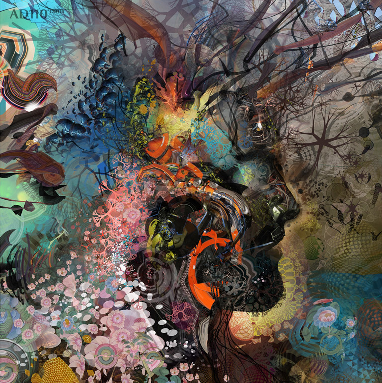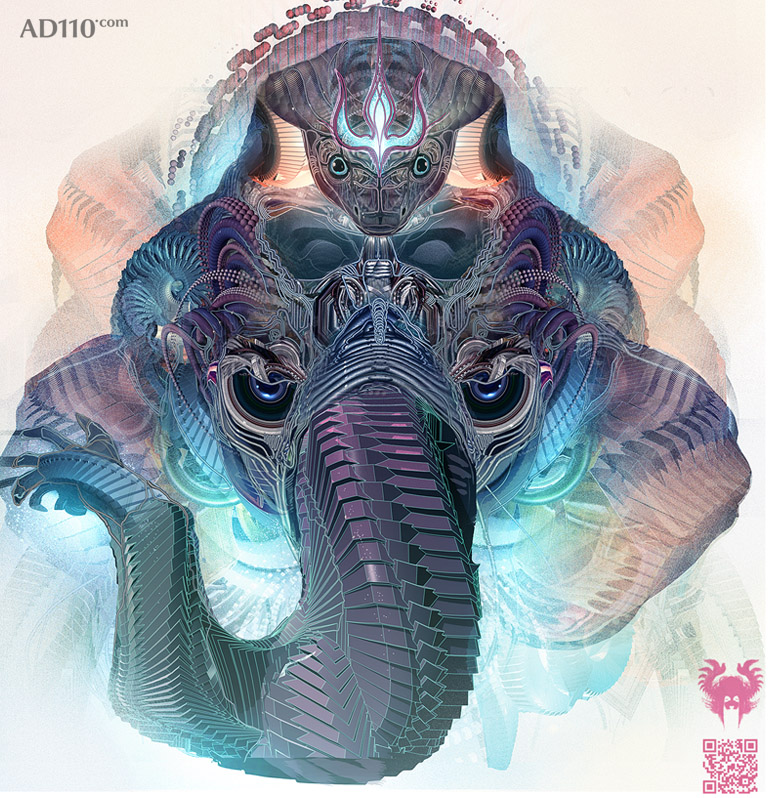 Android Jones是一位非常出色的插画师,作品极端细腻繁复,充满细节,犹如钞票上的防伪图案,绘制过程也极其复杂费时,他的客户包括任天堂等游戏及电影公司。