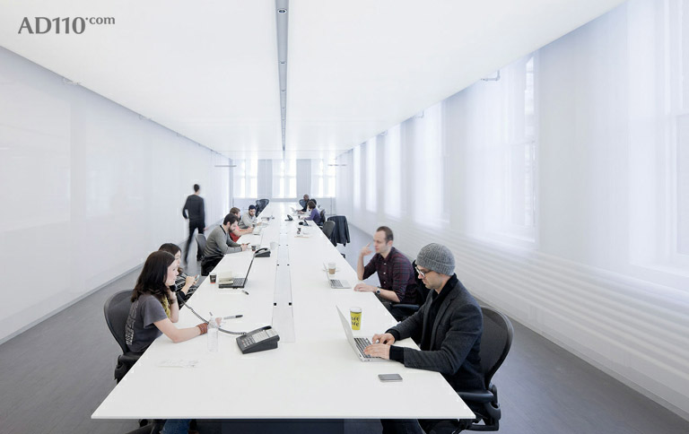 这是建筑事务所 SO-IL 在纽约设计的一个办公空间,室内被分为两个对称的空间,整体十分明亮干净,PS:里面办公,应该不是很舒适,不过从设计的角度来说:这是个好设计[lol]
