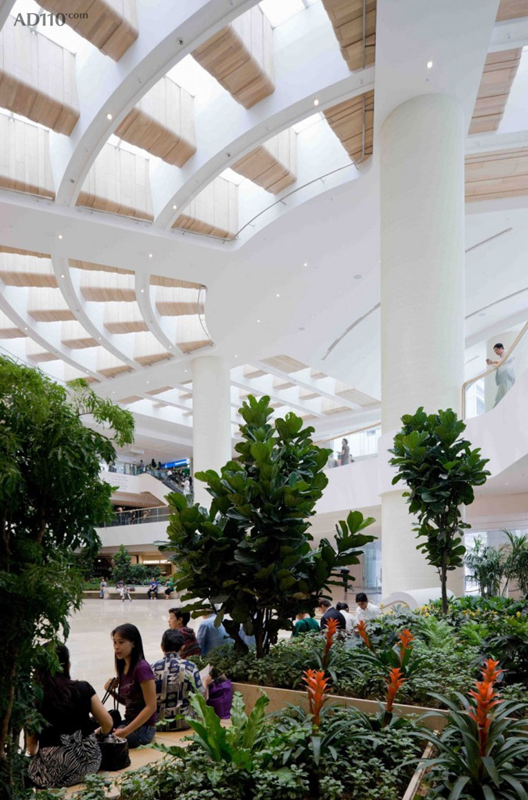 让用户的拥有更好的体验,是主要目标。采用了天然材料以及亲切的线条,非常清晰的指示系统。引入天光,打开视野。在有着斑驳光影的中庭中,布置了繁茂的植被与花朵,还有休息的凳子,为人们提供了一个新的休息空间。咖啡厅与餐厅的景观坐落在景观中,有着弧形玻璃的电梯能看到表演台,纹理丰富的石材新外立面,都让香港太古广场散发出新的魅力。