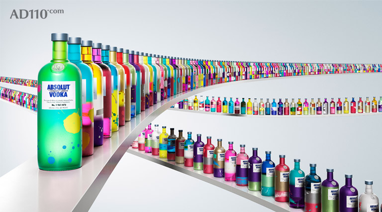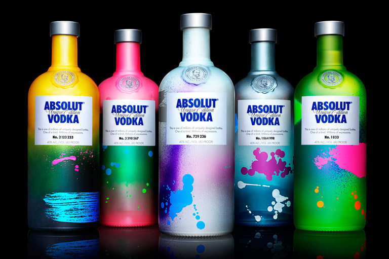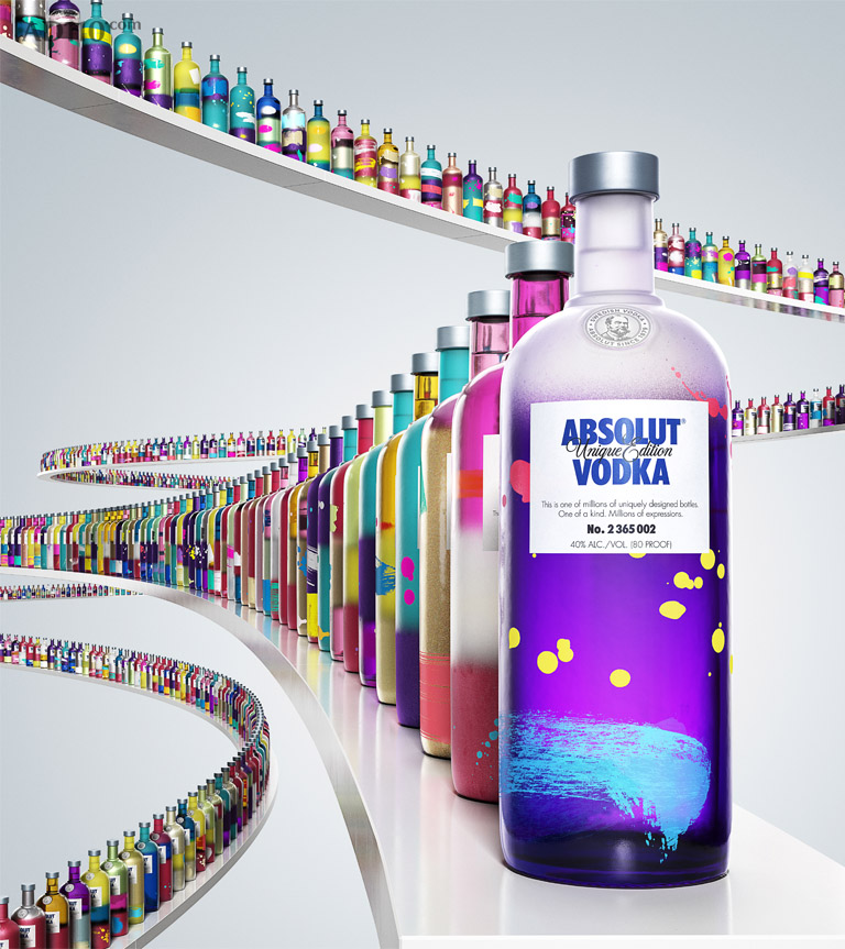为了使400万瓶“绝对不同”限量装达到“同一款产品,无数种设计”的惊艳效果,绝对伏特加对整个生产流程进行了革新调整:包括安装涂料喷枪与高阶成色机、开发特别程序设计应用于生产线上的涂料合成、图案与喷涂位置等。经过数十年的细致调整,绝对伏特加已能确保每个ABSOLUT酒瓶的外观完全相同。现在则将这种方法反过来:任何两个酒瓶的外观都不得相同。