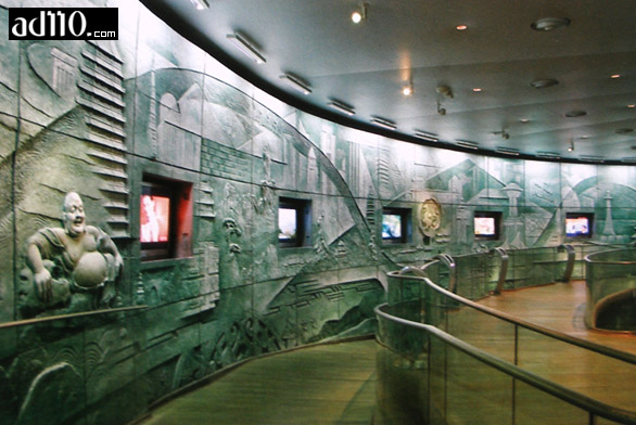 漫步在这个空中桥廊之上,可以看见略带夸张的旅游人力车以及没有污染排放的自动行驶车辆往来穿梭;在空中,使用电池发电的高空缆车悠然来去。稍远处一排使用燃料电池的混合动力巴士列队行驶。