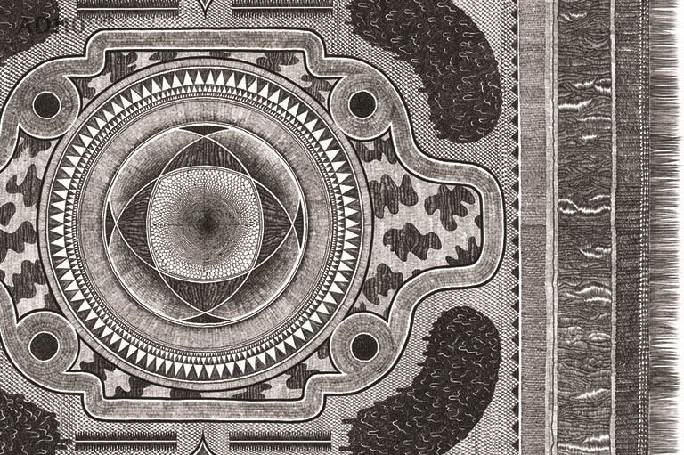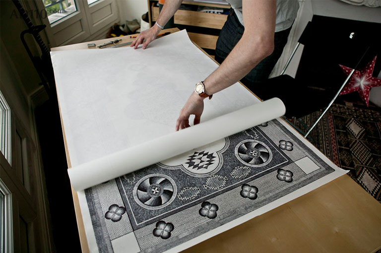 法国设计师Jonathan Bréchignac创造出世界上最复杂的地毯。不过这些地毯不是纺织物,而是由他一笔一笔在纸上慢慢画出来的。巨大的画幅上,每一个细节都如此一丝不苟。