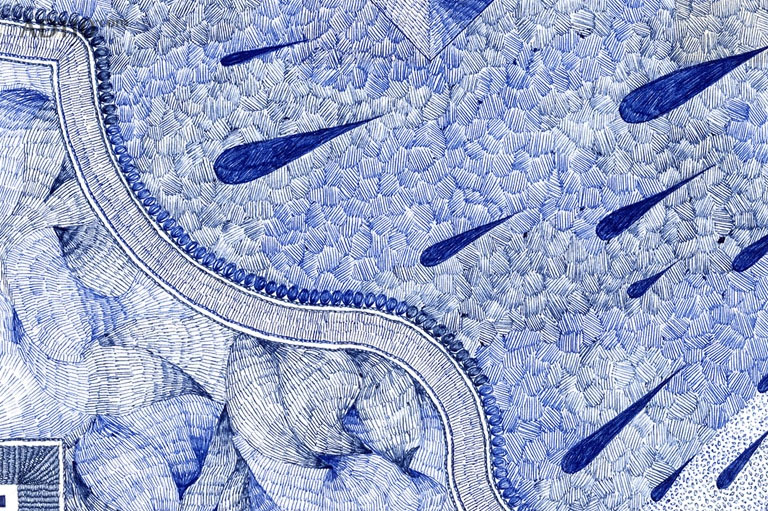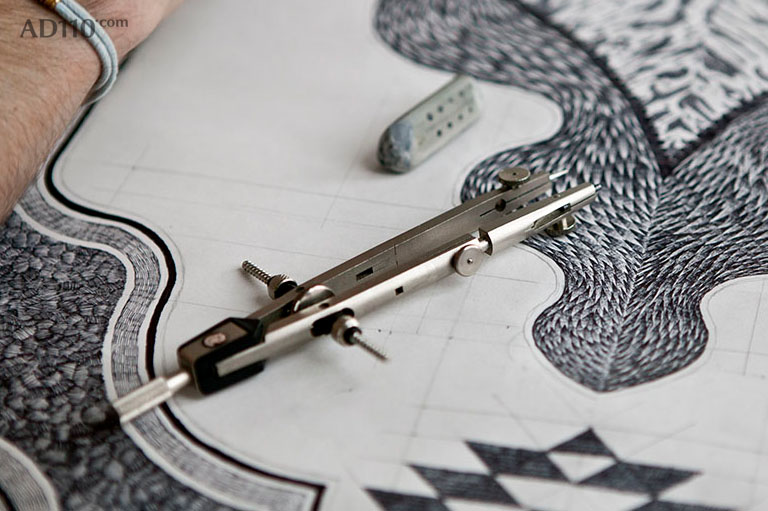 对于这种“慢”,Jonathan Bréchignac提到自己曾经在几家广告公司工作,在那里感受到一切都非常快,5秒钟的广告比比皆是。他希望做一个“大”事,每天每天完成很小一部分。怀抱着这样想法的他发现伊斯兰式的地图非常适合自己,伊斯兰设计通常是抽象的集合图案,这些够纯粹的图案让受了印度教文化影响的Jonathan Bréchignac觉得具有冥想的意味。当Jonathan Bréchignac绘制地图时,他仿佛是在冥想。